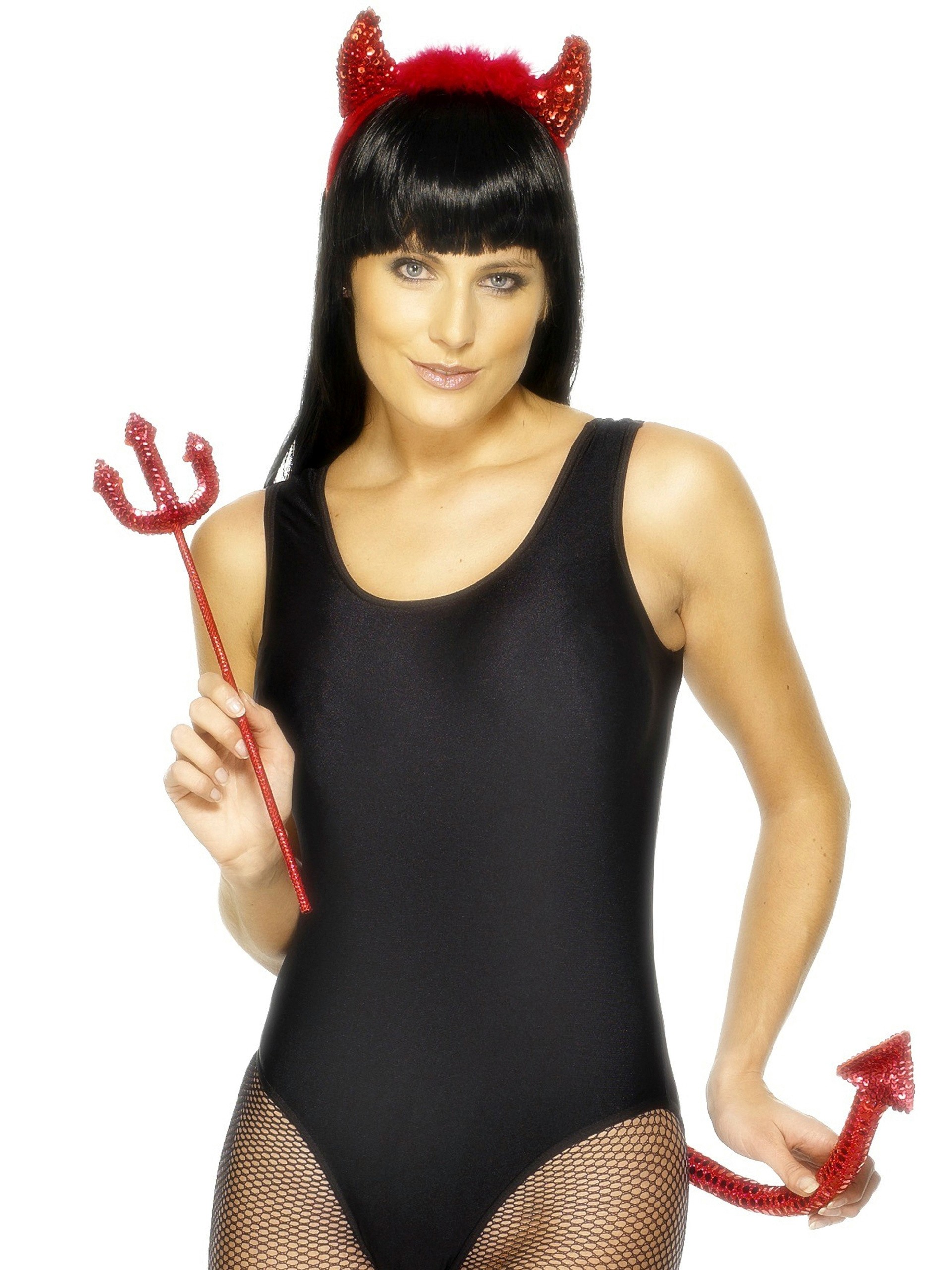 Fan the flames of fiery fantasies with this sinfully sexy sequinned set from Fever. With a forked tail, a horny headband and a fork, this devilish set will have your lover hot under the collar. A great way to finish a fancy dress outfit or Halloween look.