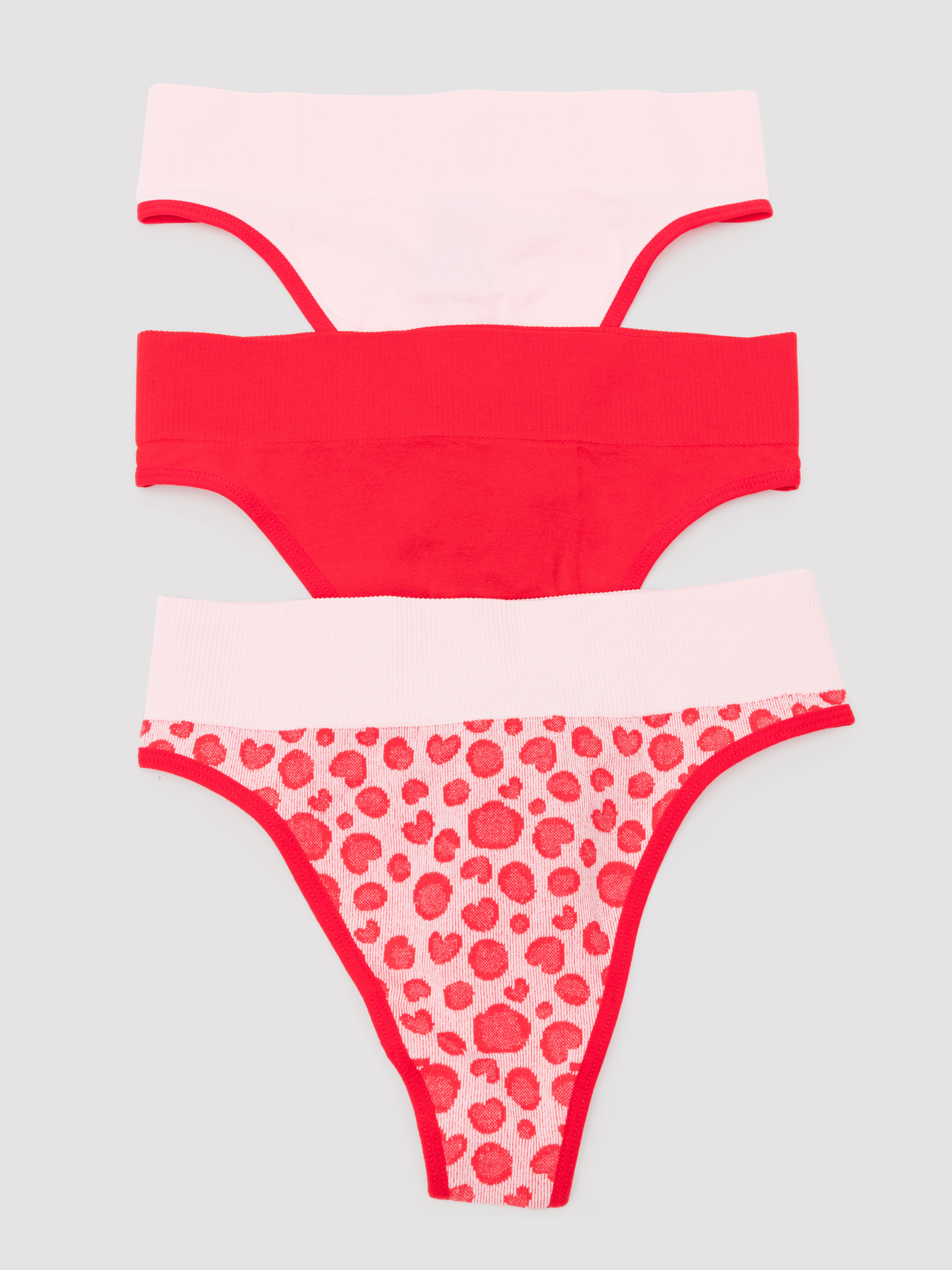 Each pack contains three saucy thongs, perfect for a long weekend away. They come in three pink designs.