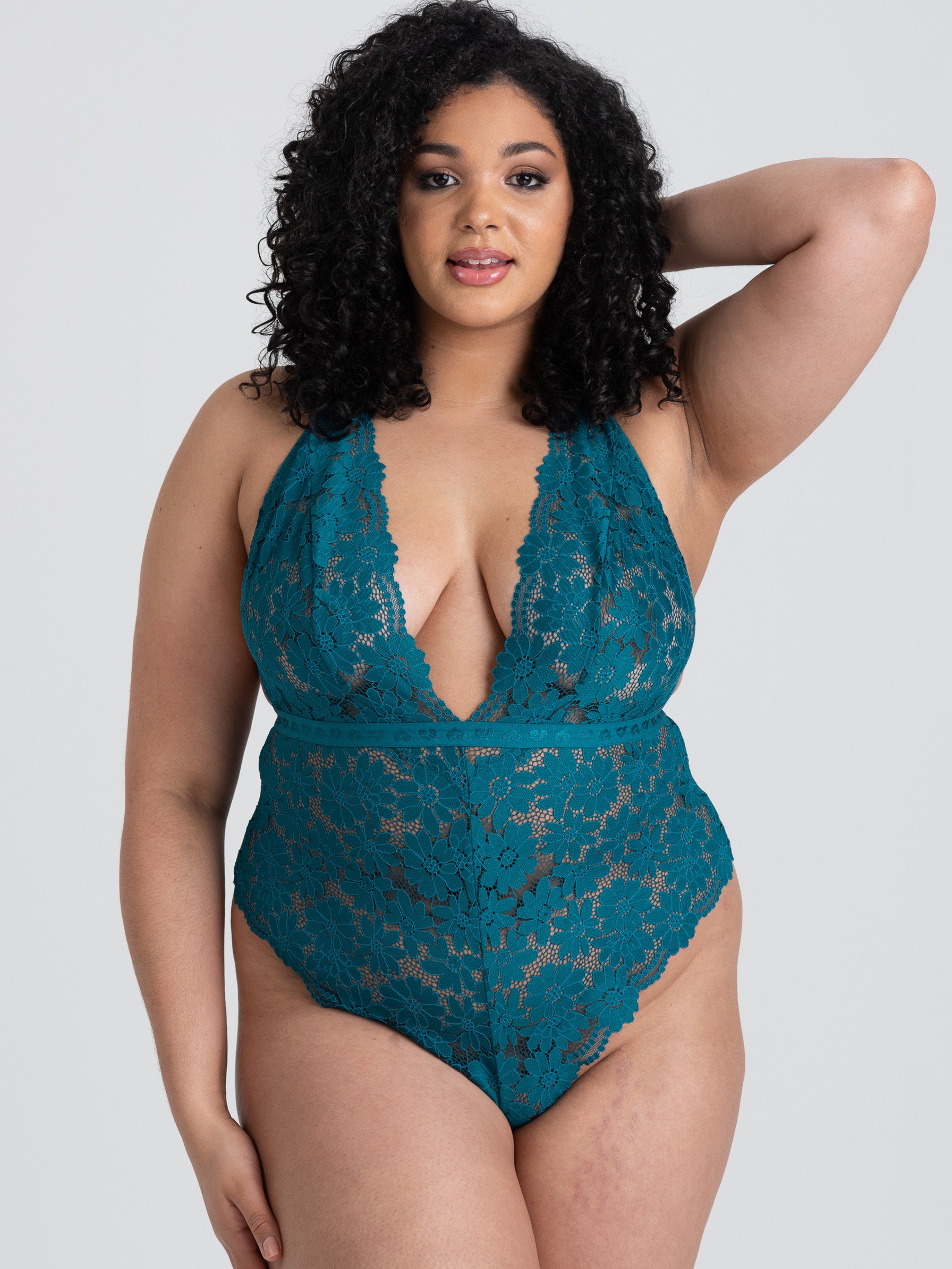 Looking for something to flaunt your curves in? This gorgeous forest green lace teddy will have you feeling like the queen you are. With a plunging neckline and a waistband adorned with Lovehoney hearts, it frames and flatters your body for a dazzling boudoir look.