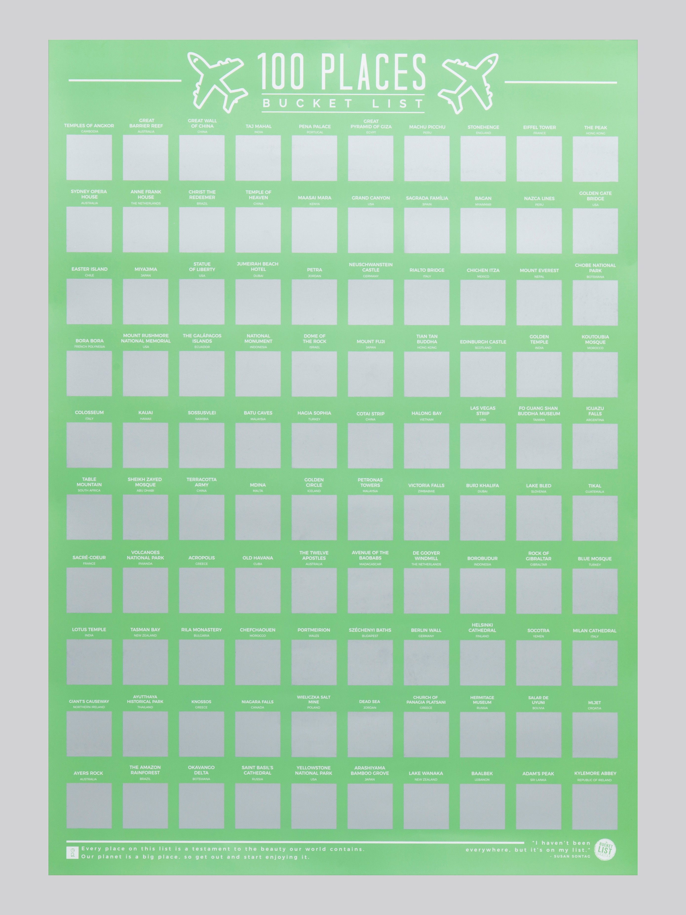 100 Places Scratch Off Bucket List Poster