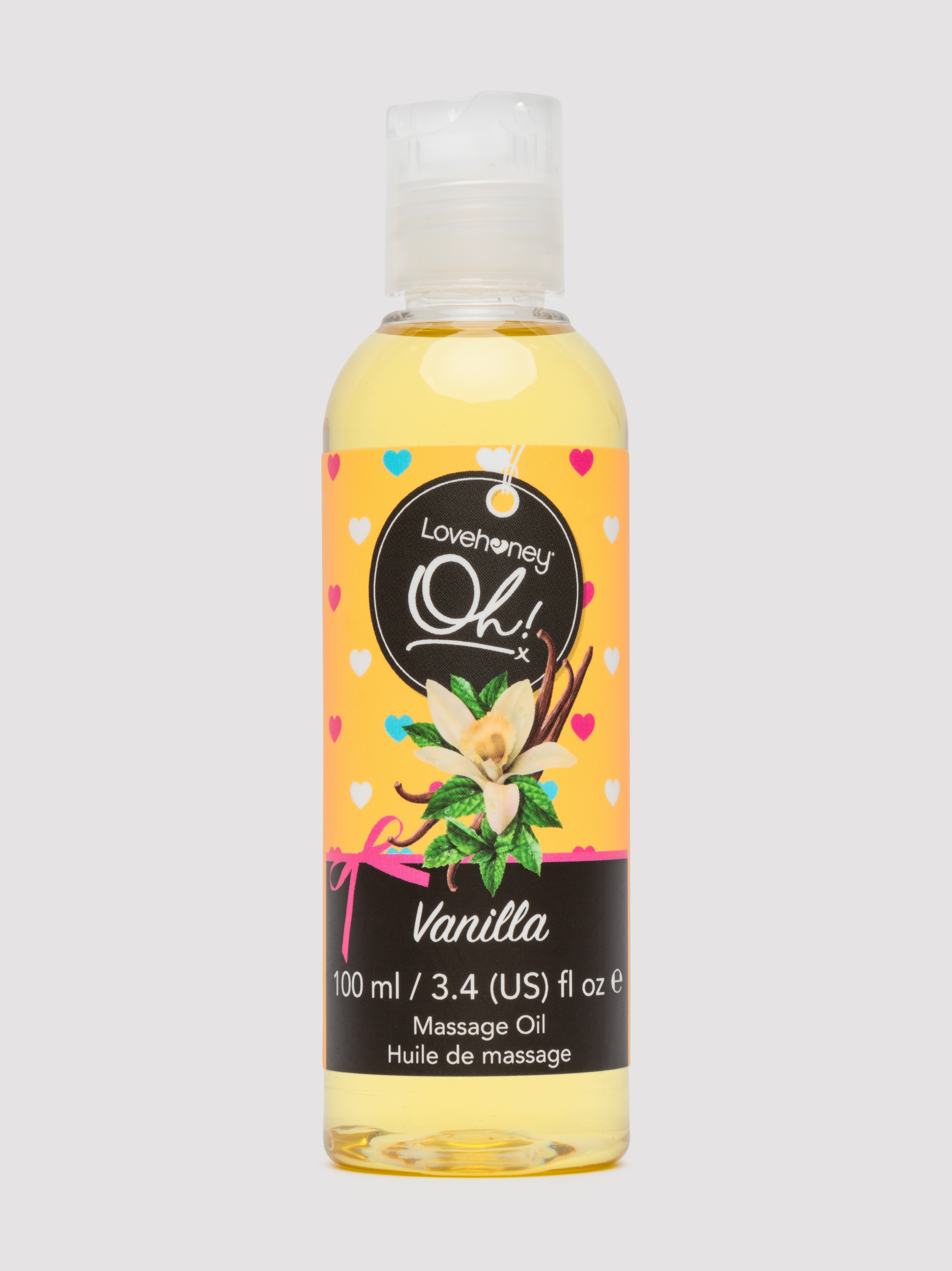 - 100ml vanilla-flavored kissable massage oil for relaxing massages and sensual foreplay