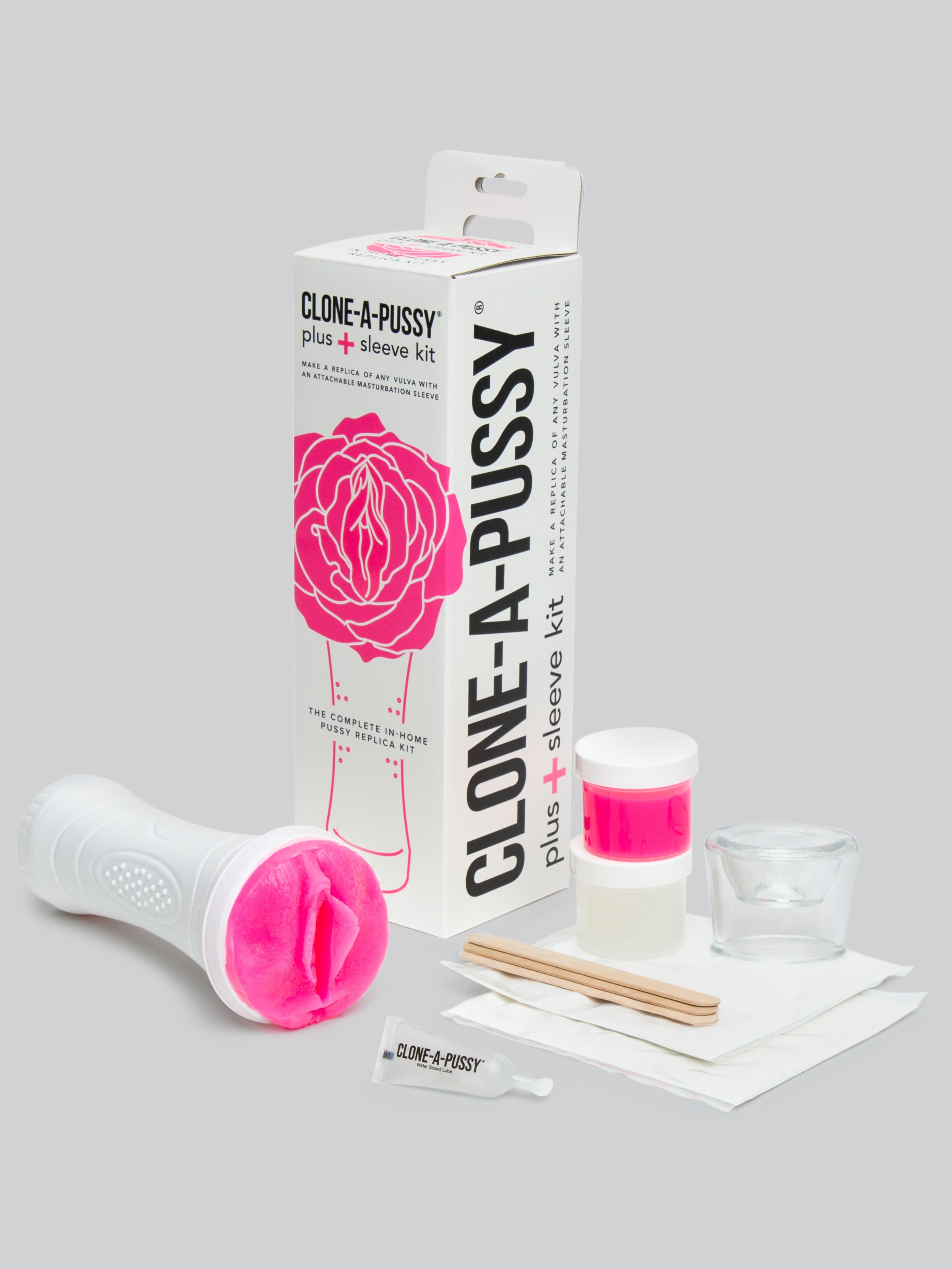 Look upon my quim, ye lusty, and delight! Immortalise your favourite set of lower lips in silicone with this do it yourself Clone-A-Pussy Plus+ kit, complete with attachable pleasure sleeve. Contains everything you need (except water).