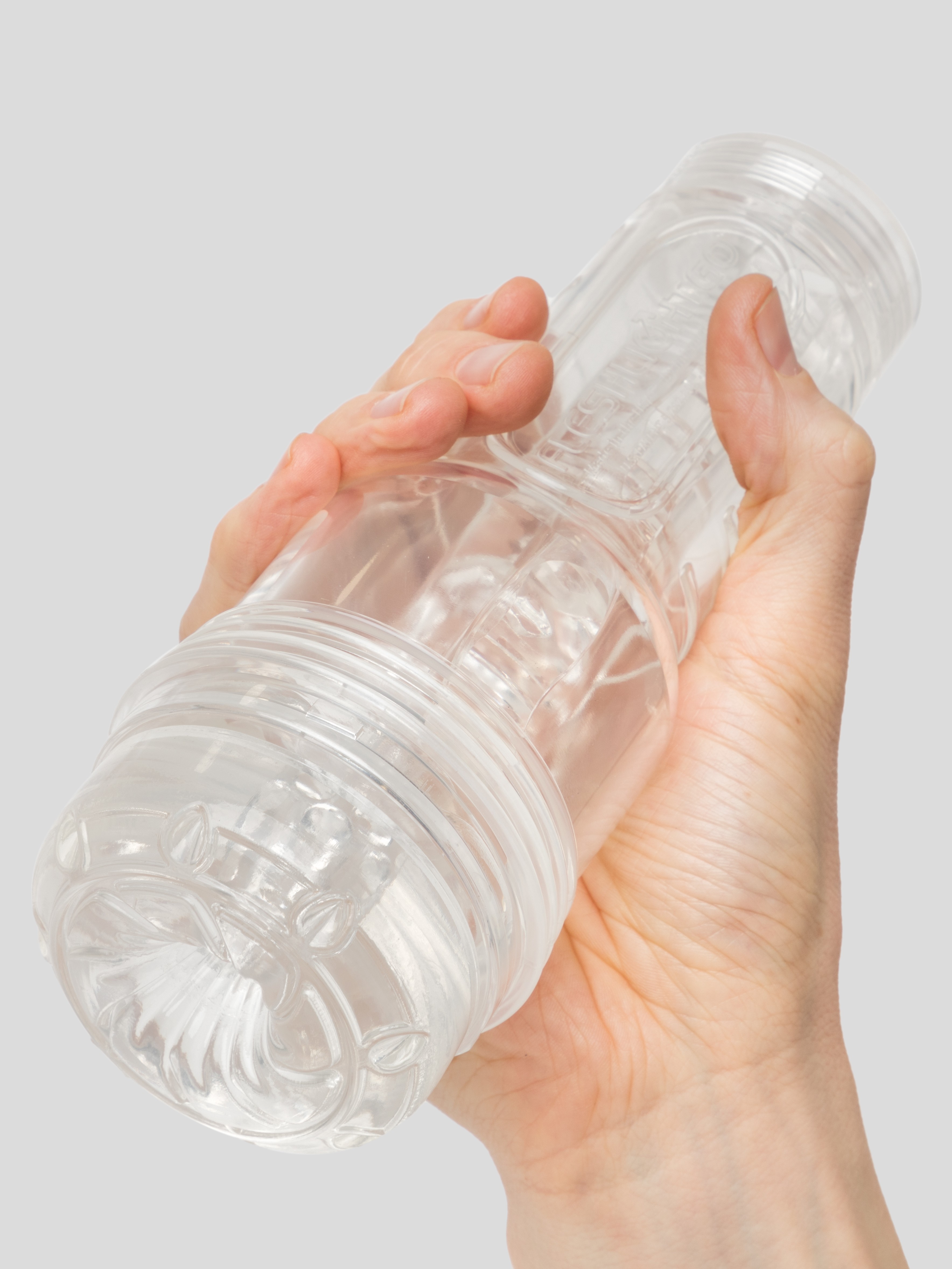 - Transparent Fleshlight Go male masturbator in a discreet, travel-friendly size